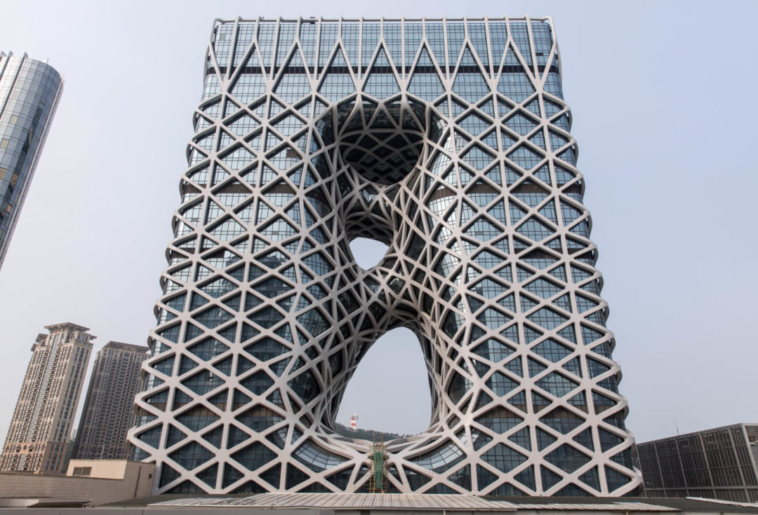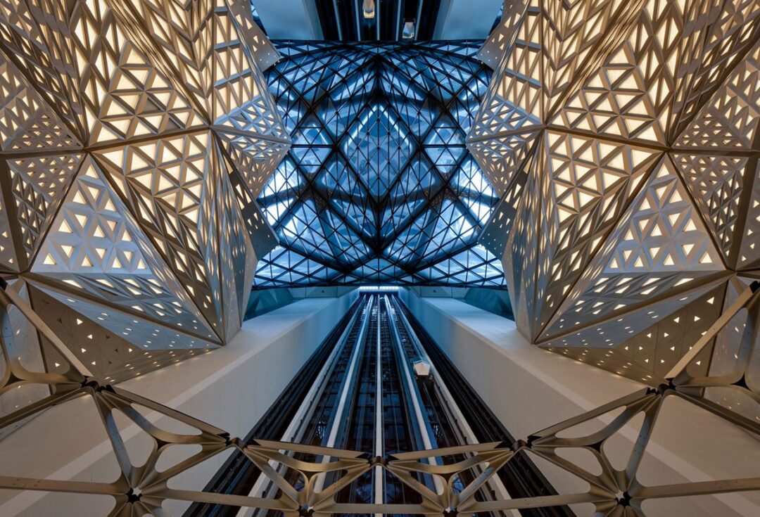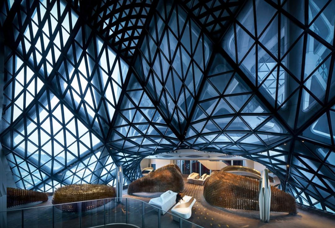 Fruit of the imagination of brilliant architect Zaha Hadid, its distinctive non-linear forms and technical complexity are characteristic of the deconstructivist movement. The hotel is built on an unusual structure – an exoskeleton that wraps itself around three central voids.