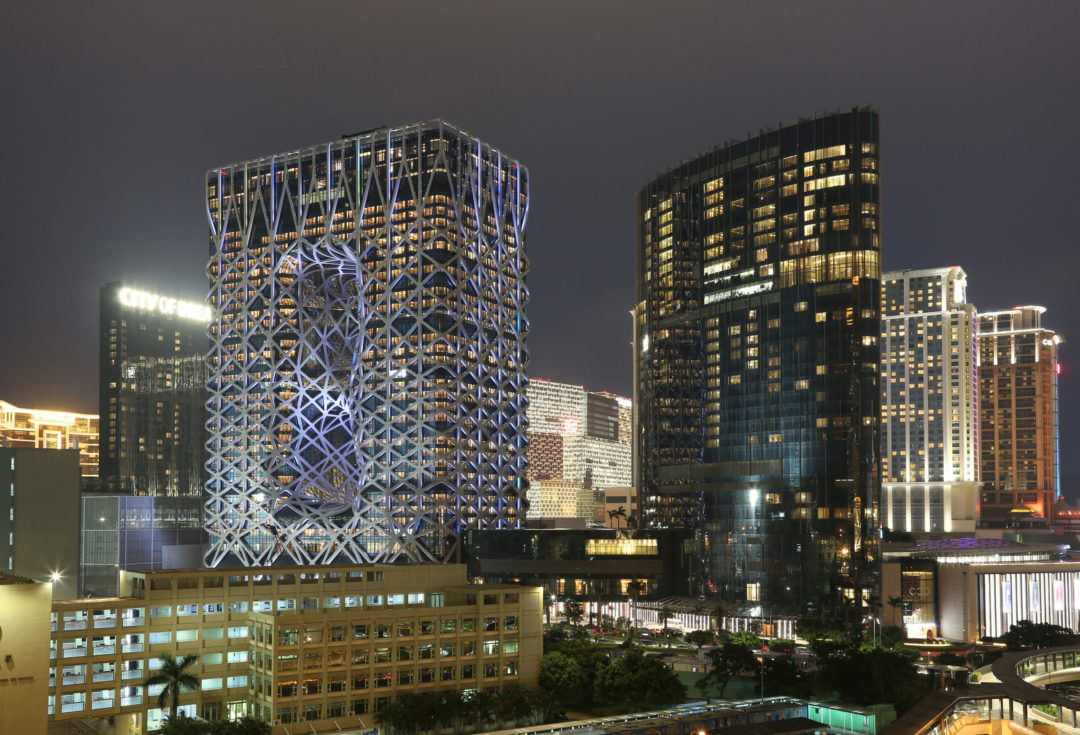 The huge construction challenge was gallantly taken up by the teams of Dragages Macau, who where responsible for the hotel’s structure and envelope. Some 4,500 tons of steel were required just for the temporary structures used to construct the 126m-high central voids of the building. Several de-propping operations were then necessary to give the exoskeleton its final form. The result: a towering, avant-garde structure that whisks visi tors straight into a world of the future.