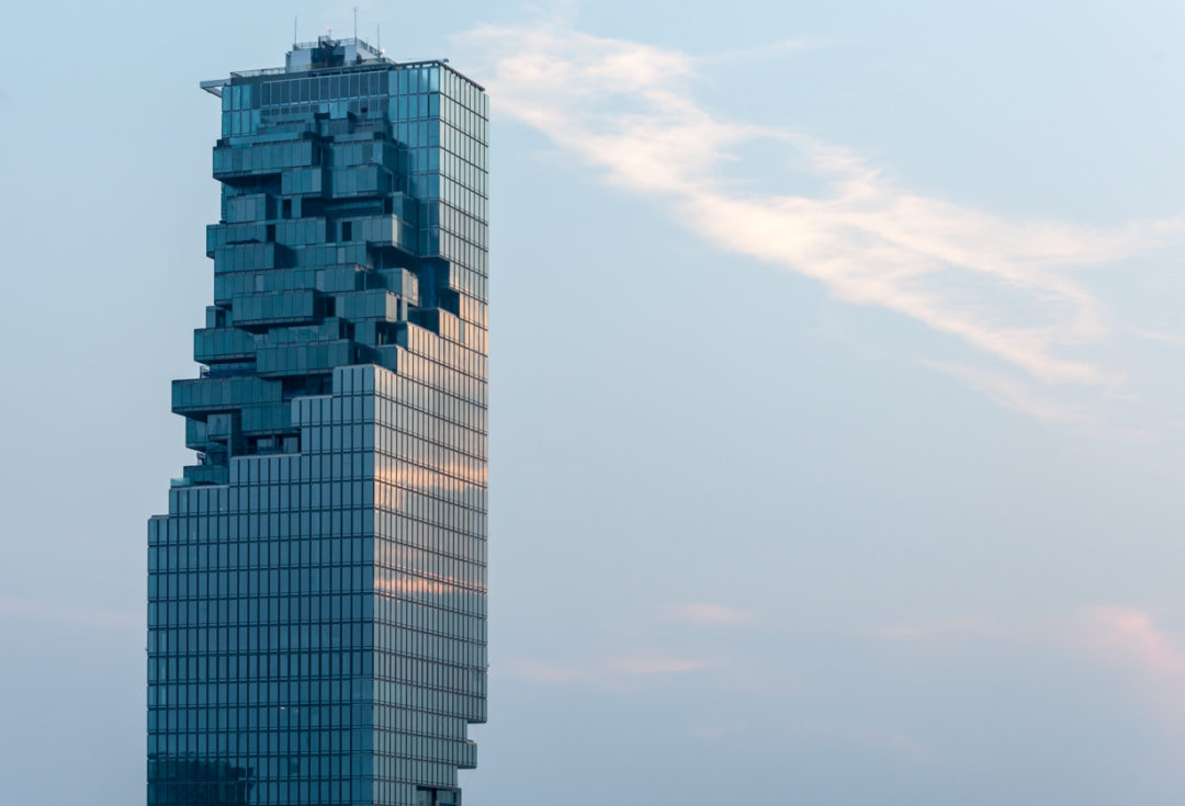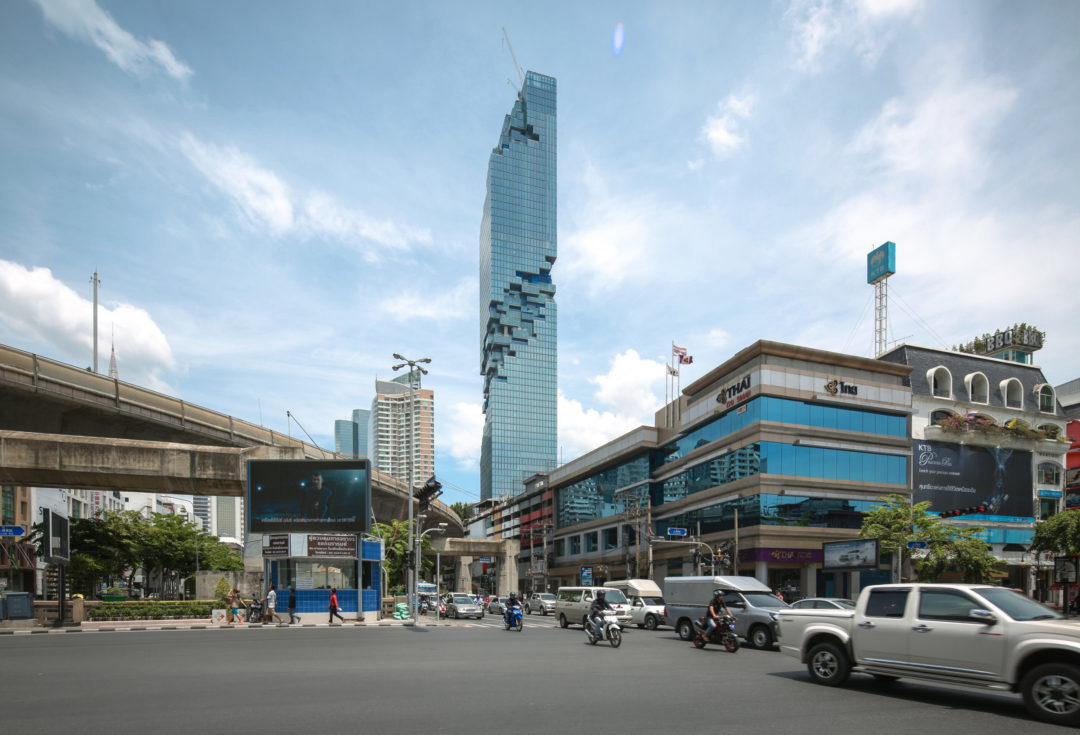 The MahaNakhon Tower is a unique structure, made distinctive by the 3D pixel ribbon that envelopes it, composed of steel blocks that appear and disappear over several consecutive levels. 30% of the building’s slabs overhang without direct support. It was truly a feat to ensure that every storey was different!
