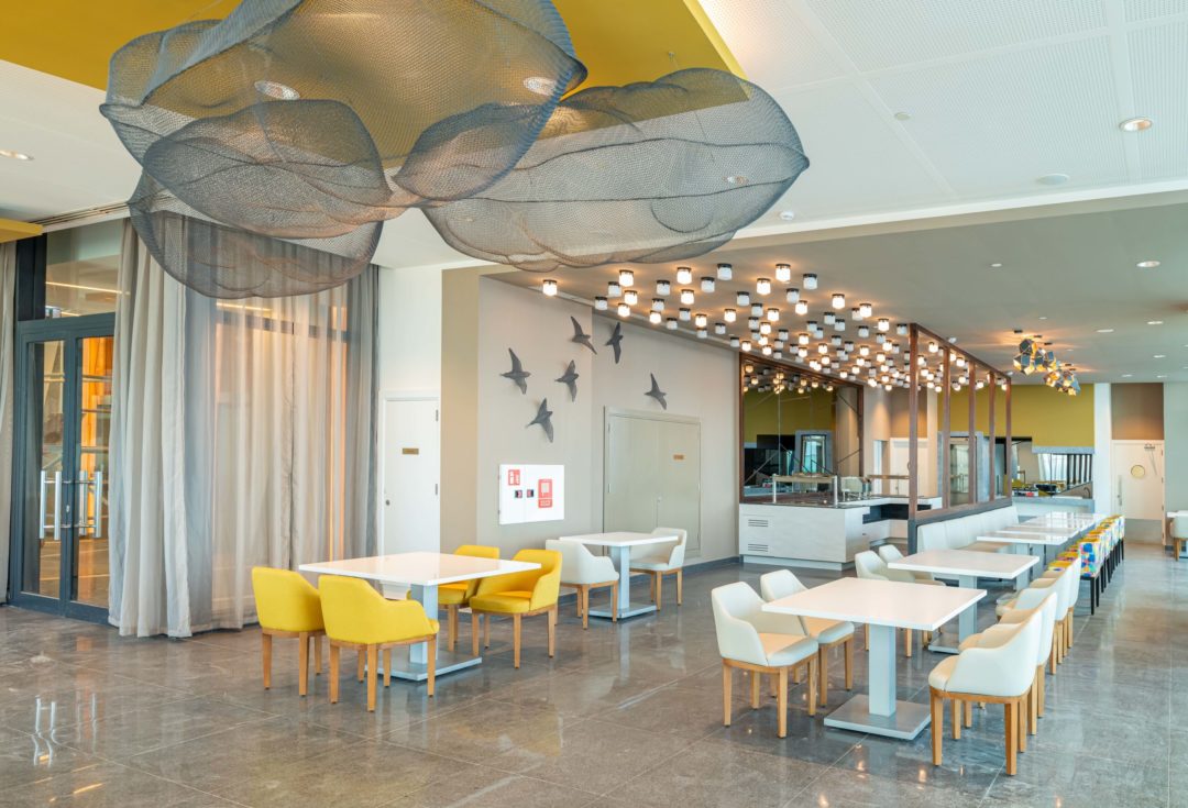 The two towers emerge from the building as two swirls, resembling the sails in the wind providing a quiet and intimate setting for hotel guests.